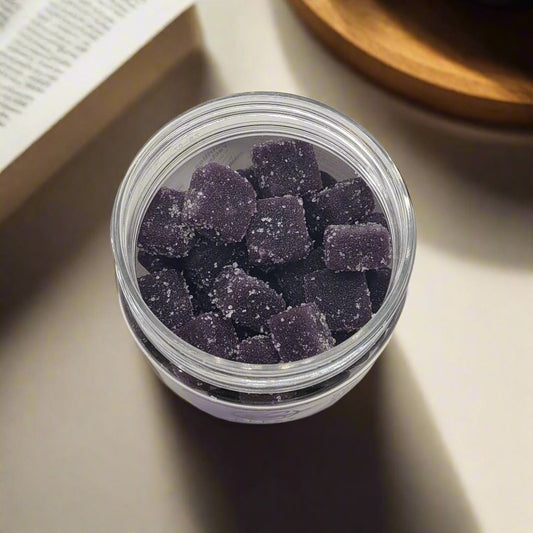 CBD + CBN SLEEP FORMULA WITH MYRCENE, MELATONIN AND PASSION FLOWER GRAPE GUMMY CUBES 2000MG CBD, 400MG CBN